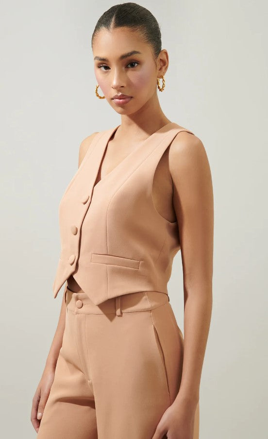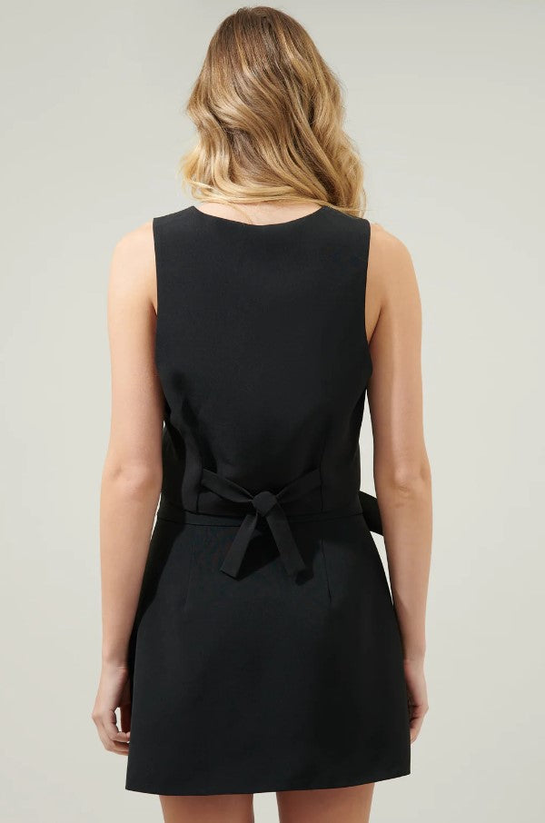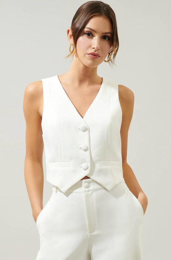 Suit up and reflect Big Boss Energy! in this classic 'Belle Button-Up Cropped Waistcoat' Features a sleeveless, tailored fit with princess seams that start at the shoulder and follow down to the hem. Adjust the waist by tightening or loosening the tie along the back panel.