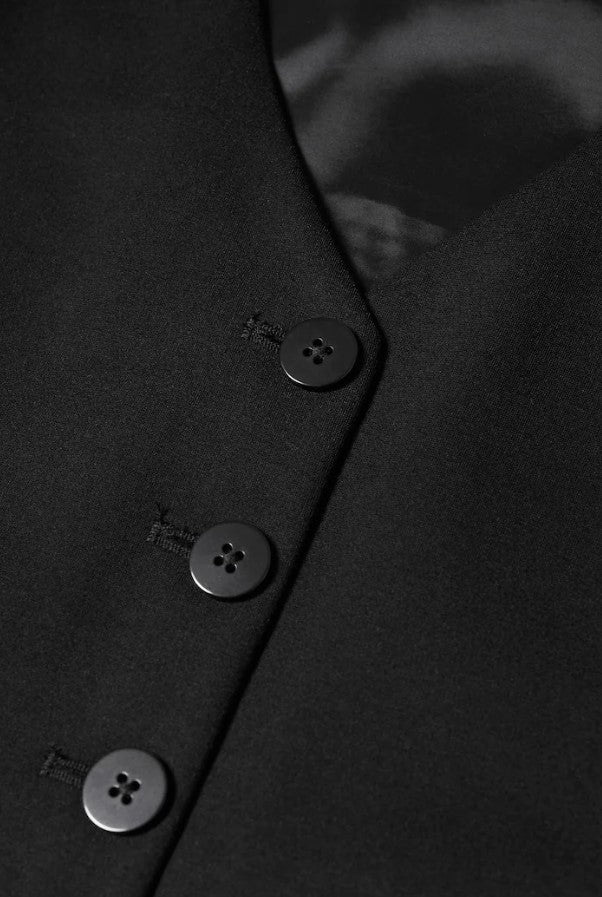 Black Straight-Cut Cropped V-Neck Waistcoat