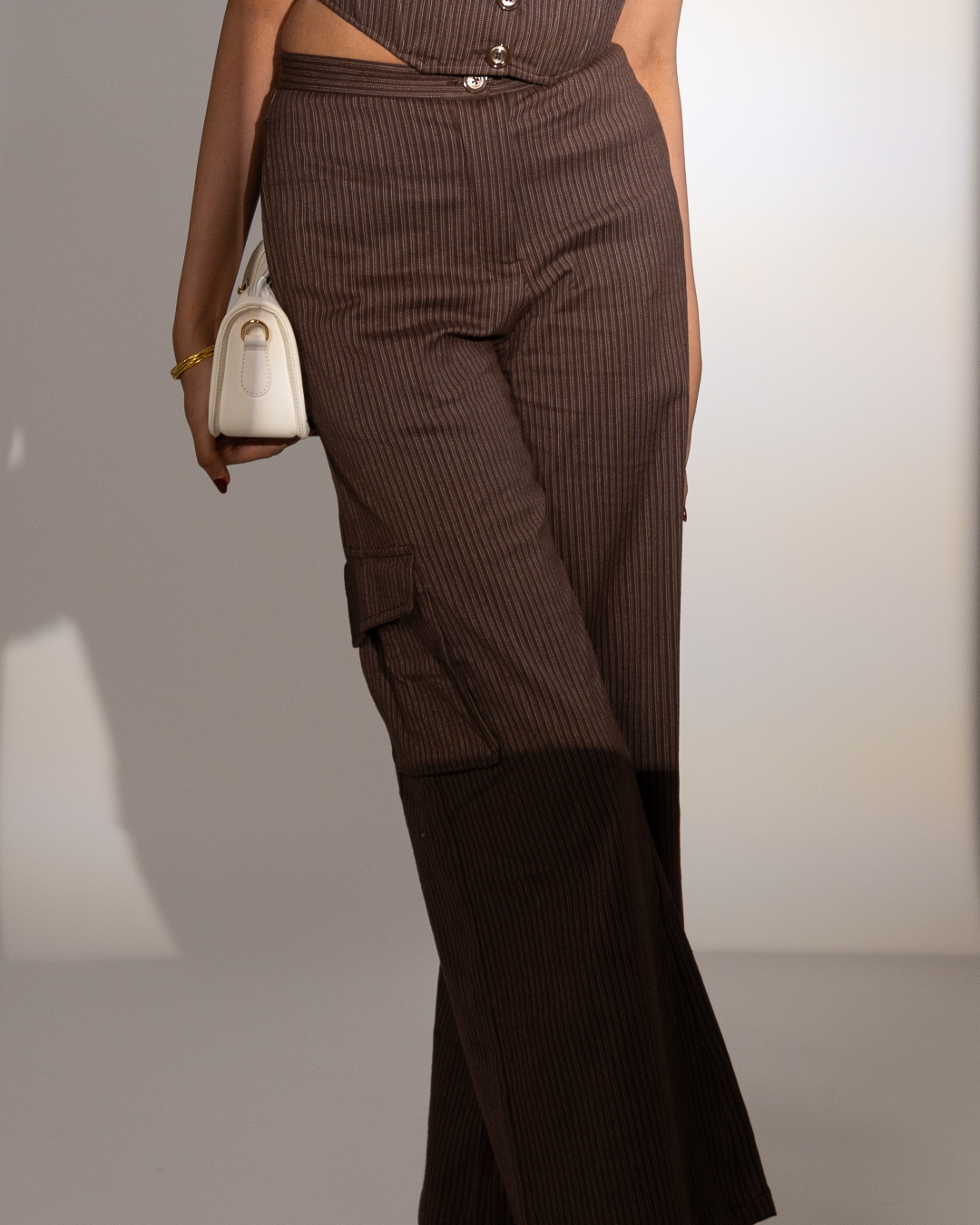 - Trousers Style- Wide leg, relax fit, side cargo pockets, front zipper fly with button closure