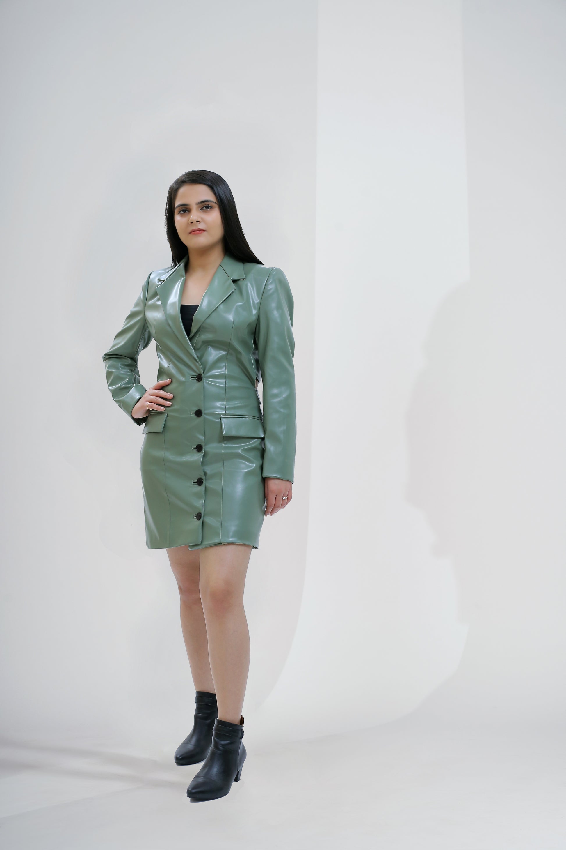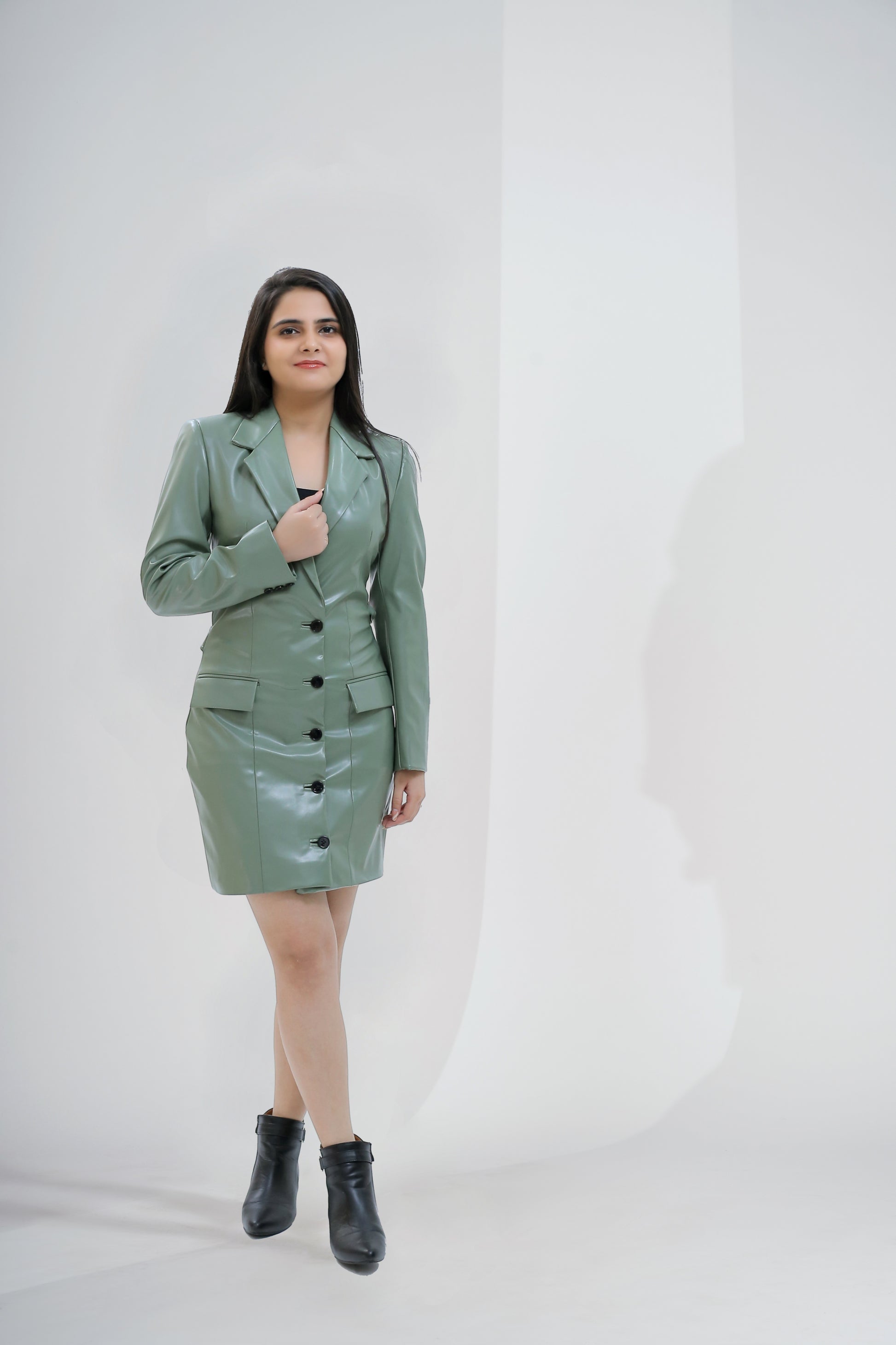 Luxe Faux Leather Trench Dress